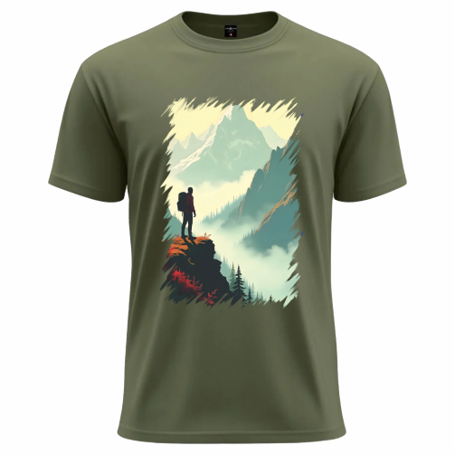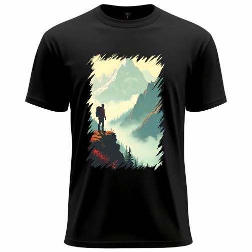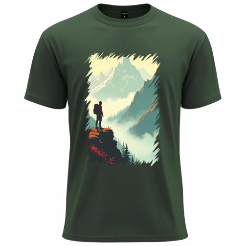 Step into the spirit of adventure with this Mountain Wanderer Graphic T-Shirt. Designed for explorers at heart, this tee features a breathtaking scenic illustration of a lone traveler standing at the edge of nature’s grandeur. The artistic mountain landscape and soft color tones create a calm yet powerful visual that reflects freedom, courage, and a love for the outdoors.