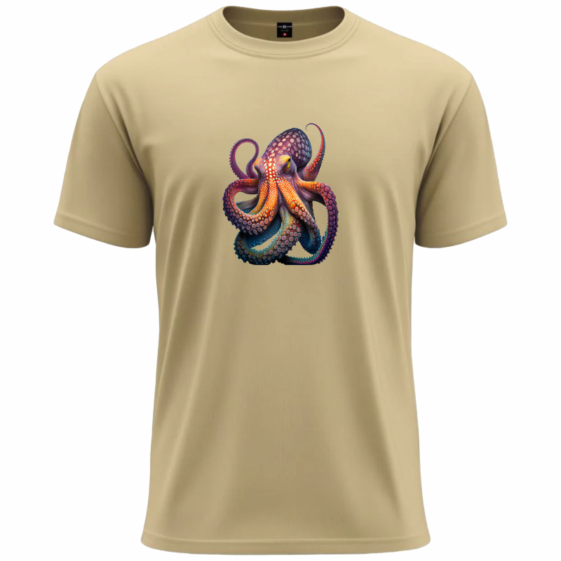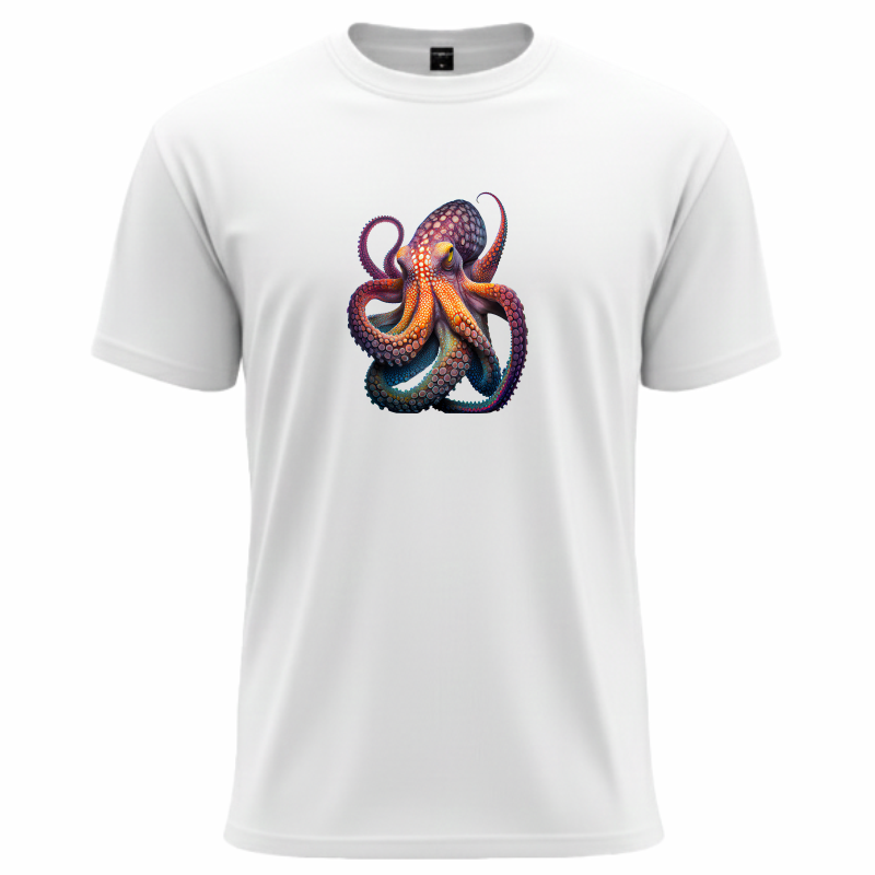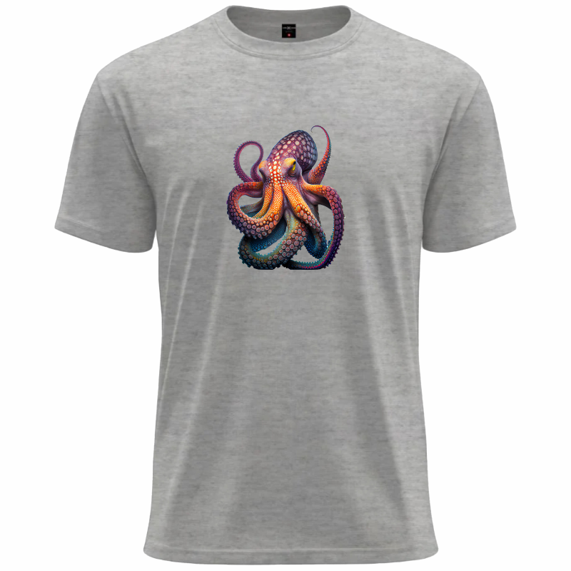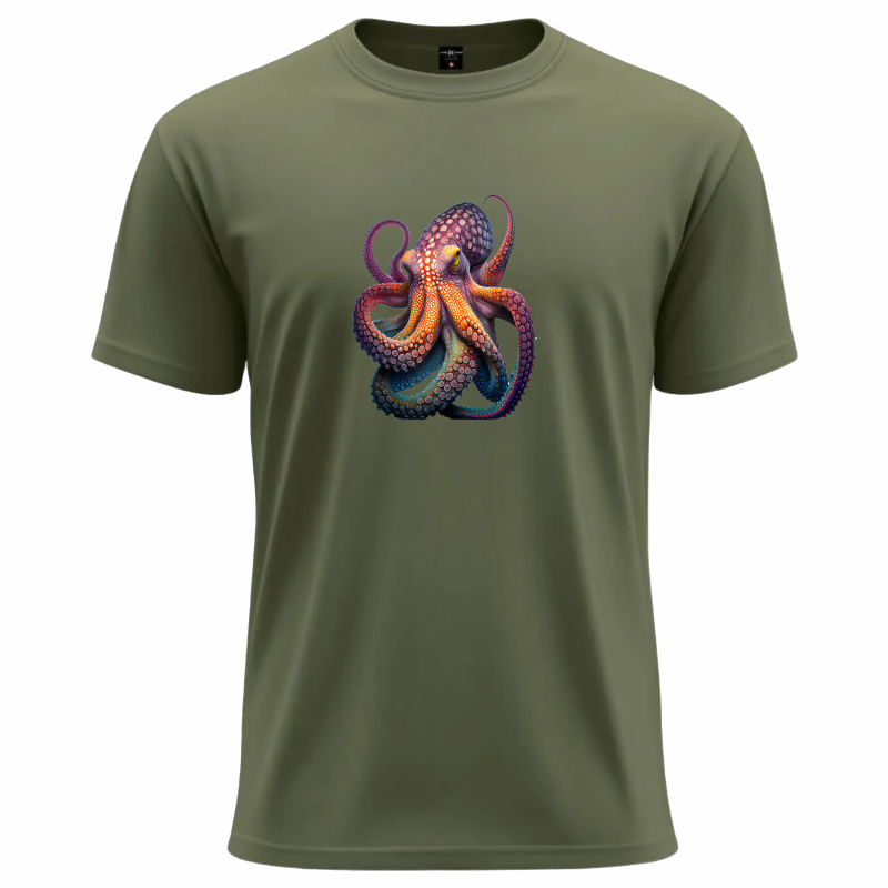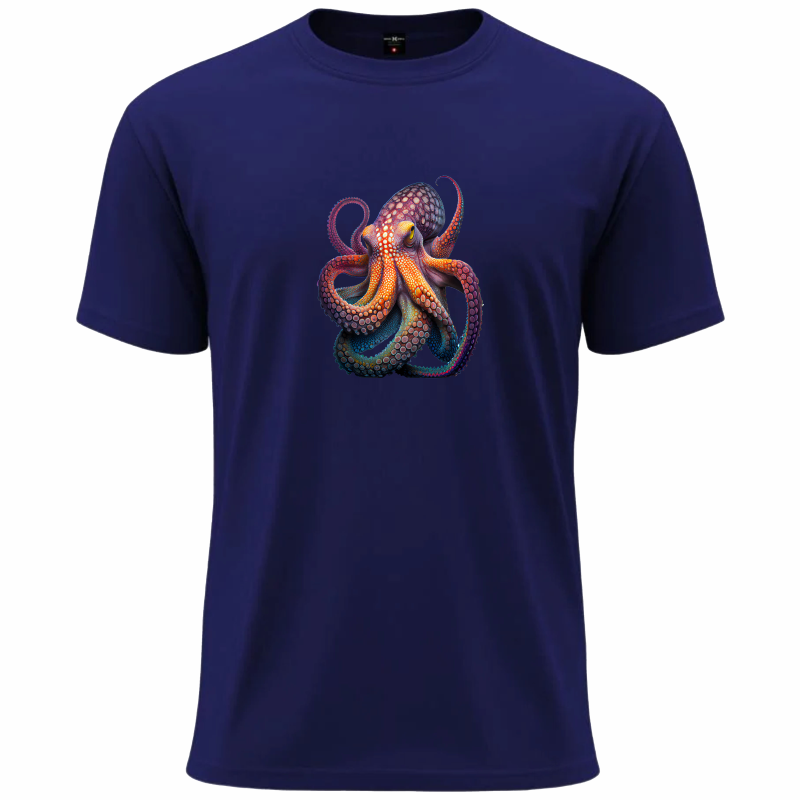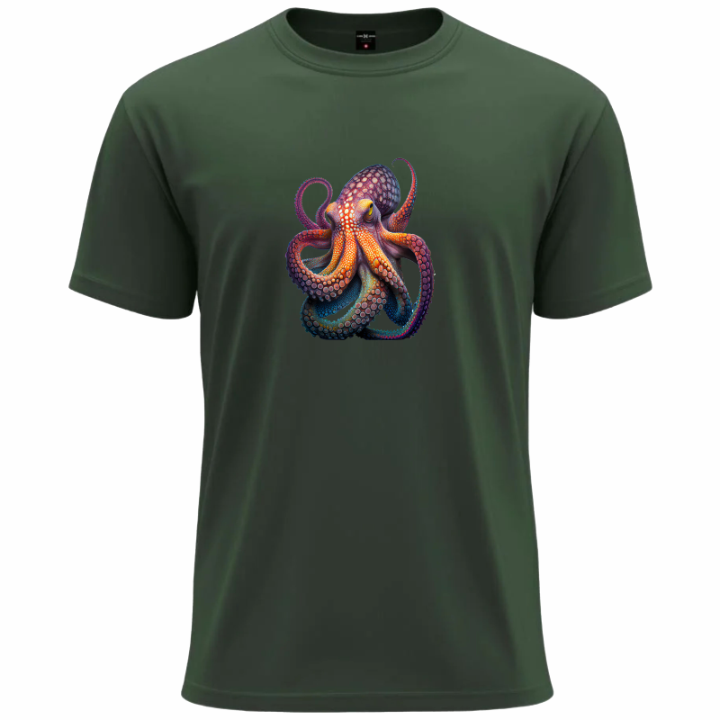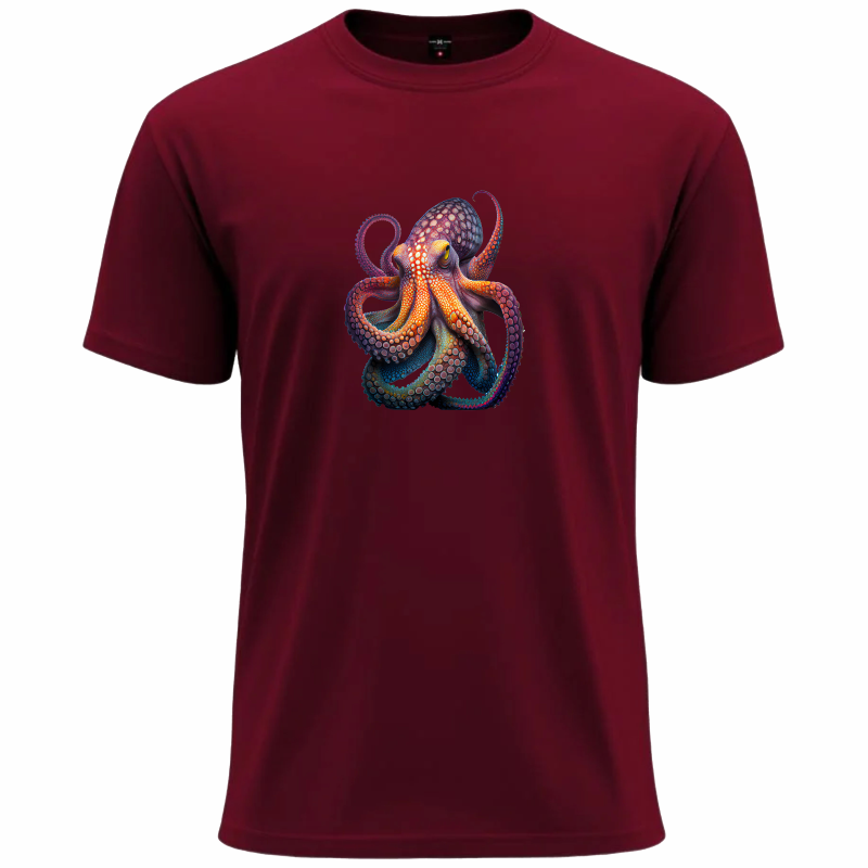 A stylish graphic T-shirt featuring a vibrant and detailed octopus design, perfect for a bold and artistic everyday look.