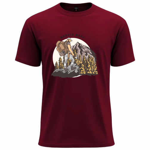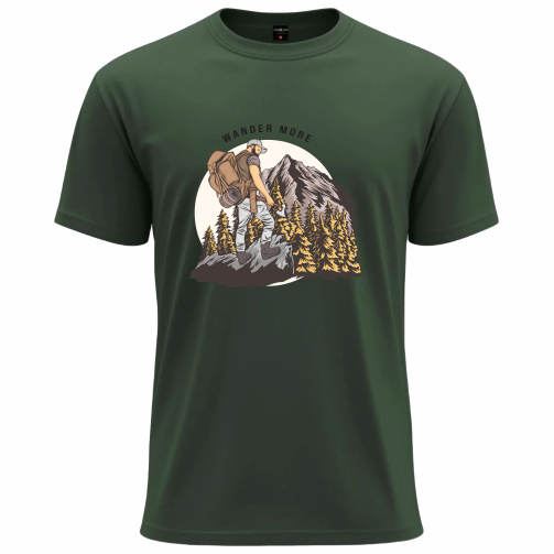 Gracefull graphic t-shirt featuring a bold “Wander More” hiking and mountain design, made with soft breathable fabric for everyday comfort and adventure style.